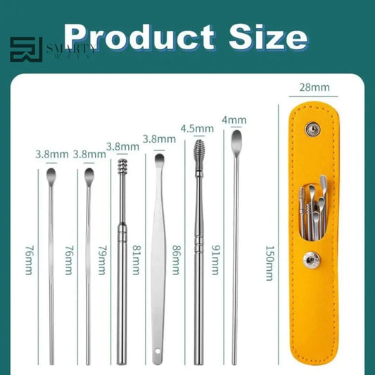 6 Pcs Stainless Steel Ear Wax Removal Kit – Safe & Reusable Ear Cleaner
